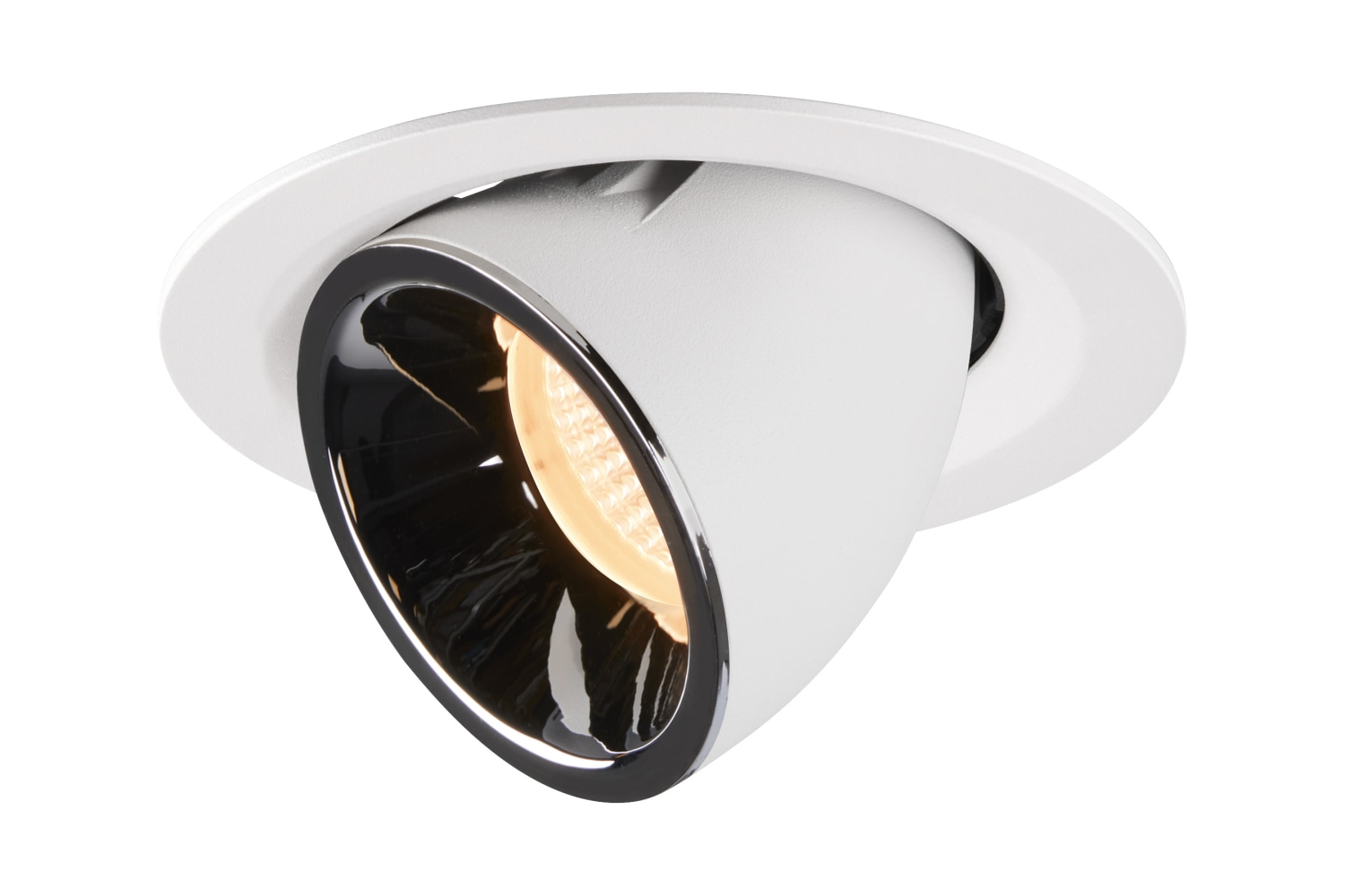 NUMINOS® GIMBLE M loftlampe i hvid/krom. Med en farvetemperatur på 2700 K og en lysspredning på 20°.