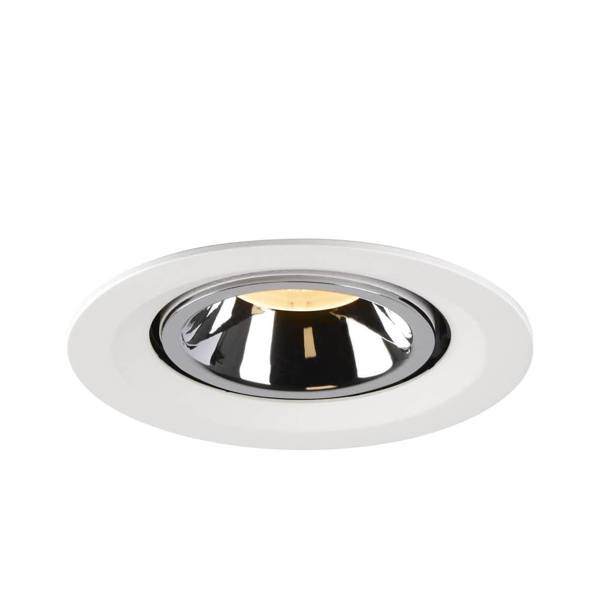 NUMINOS® GIMBLE M loftslampe i hvid/krom. Med 3000 K lysfarve og 55° lysspredning. Effektiv og stilfuld belysning til dit hjem.