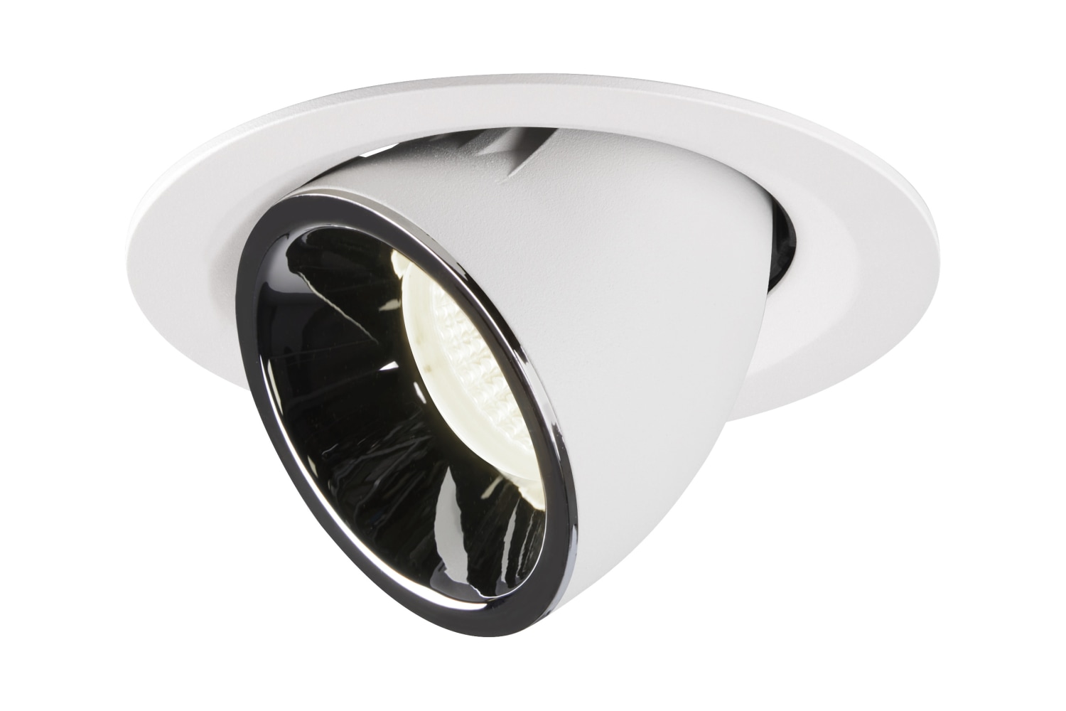 NUMINOS® GIMBLE M er en stilfuld indbygningsspot i hvid/krom. Leverer 4000 K lys med en 55° spredning.