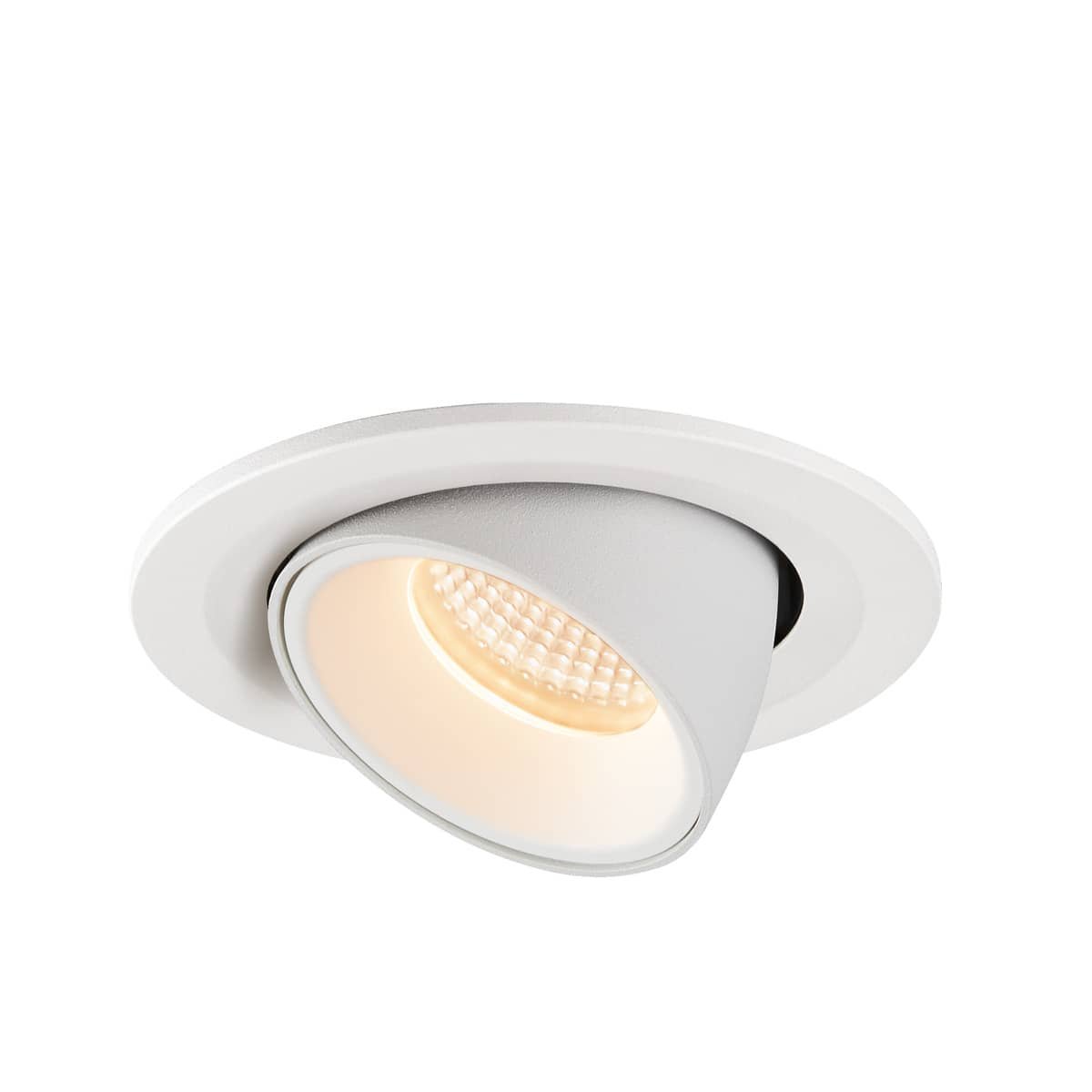 NUMINOS® GIMBLE S loftindbygningsspot i hvid. Med en farvetemperatur på 2700 K og en lysspredning på 55°.