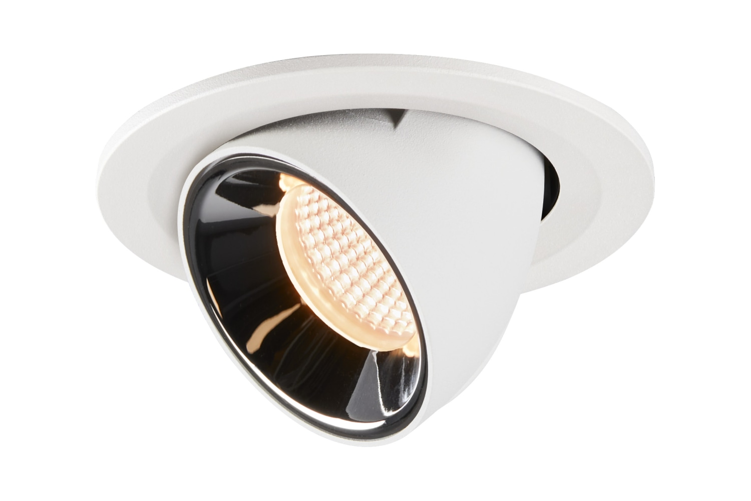 NUMINOS® GIMBLE S indbygningsspot i hvid/krom med 2700K og 55° lysspredning. Effektiv og stilfuld belysning.