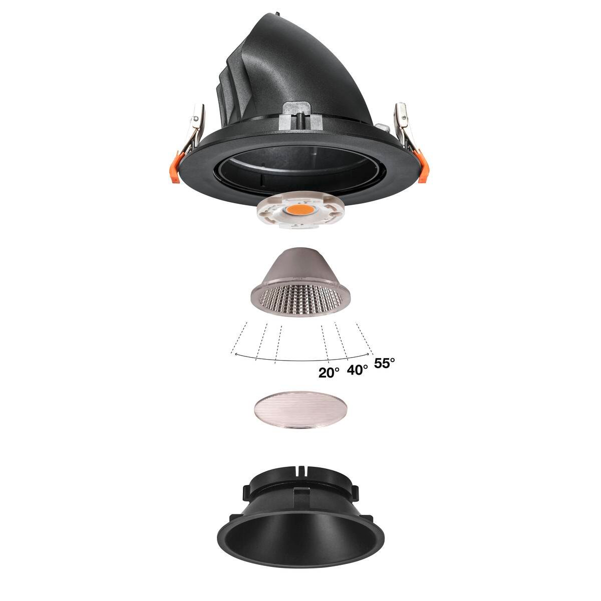 NUMINOS® GIMBLE XL indbygningsspot i sort. Med 3000 K og 40° lysspredning.