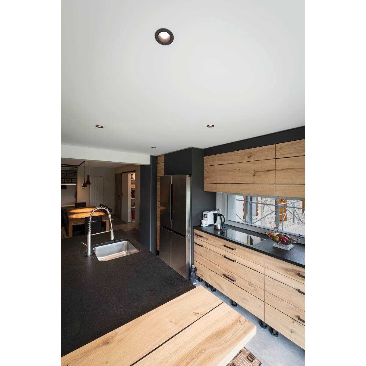 Spotten har en elegant sort/sort finish, der passer diskret ind i de fleste moderne indretninger. Den er velegnet til brug indendørs, hvor der ønskes en pålidelig og stilfuld lyskilde.