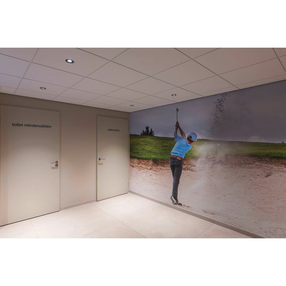 Dette NUMINOS® DL L indbygningsspot er designet til indendørs brug og leverer en effektiv og stilfuld belysningsløsning. Med sin elegante sorte finish på både ydre og indre ramme, integreres spotten diskret i loftet og bidrager til et moderne æstetik.