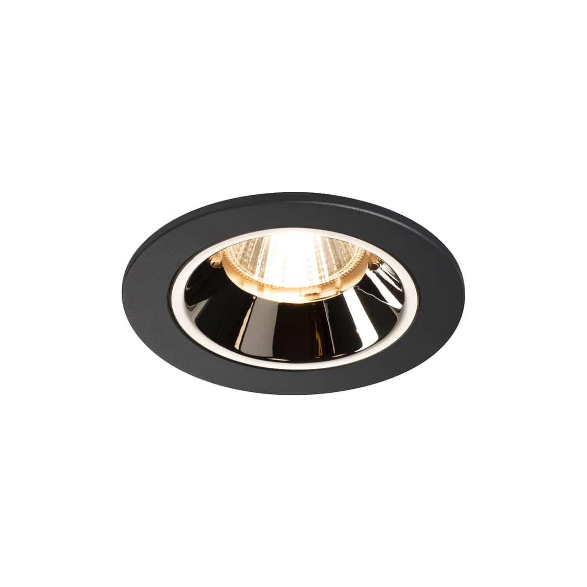 NUMINOS® DL S indbygningsspot i sort/krom med 2700K og 55° spredning. Inkluderer fjeder for nem montering.