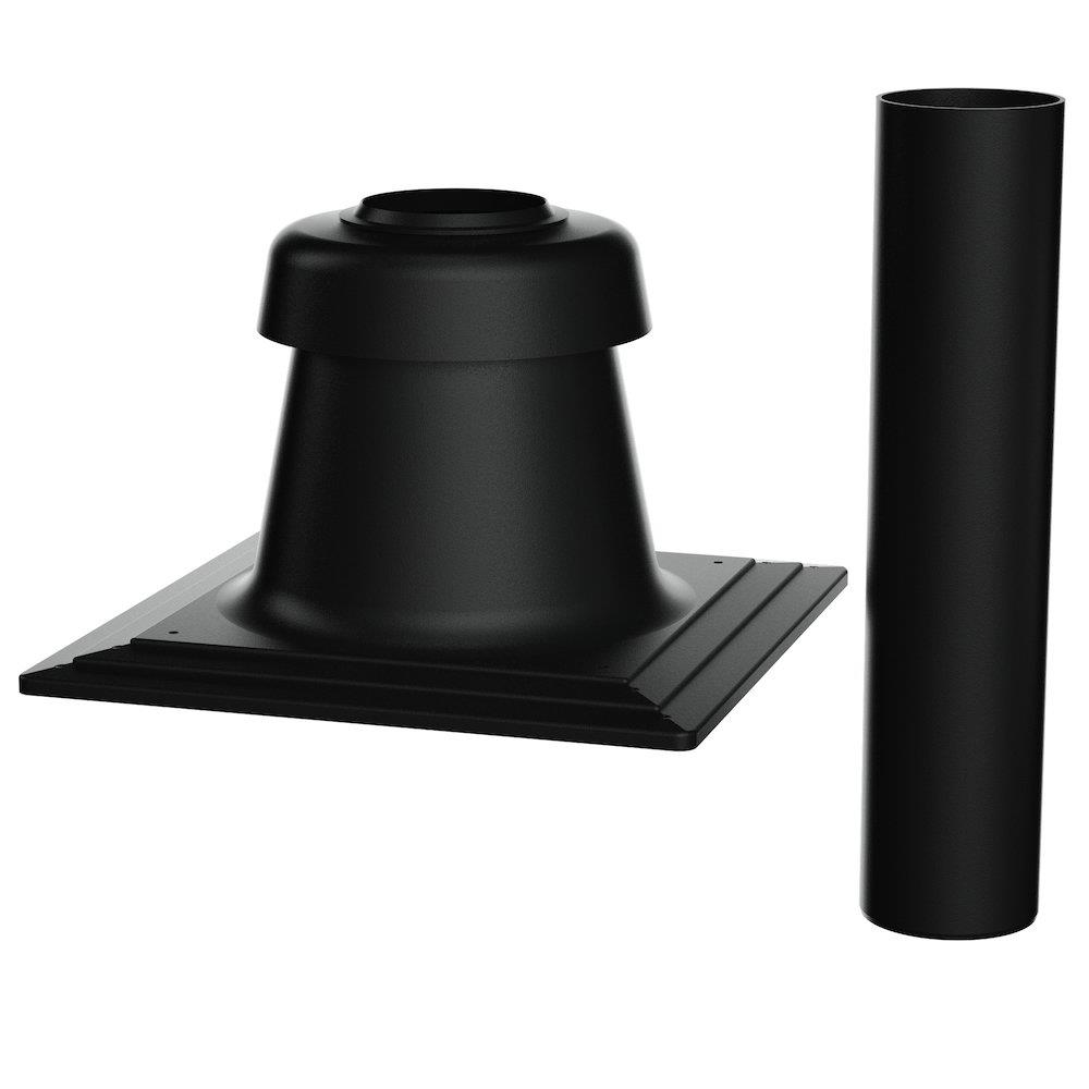 Skorstenstop i sort plast til DN80 aftræk. Inkluderer skorstenstop med 400 x 400 mm base og 0,5 m DN80 rør.