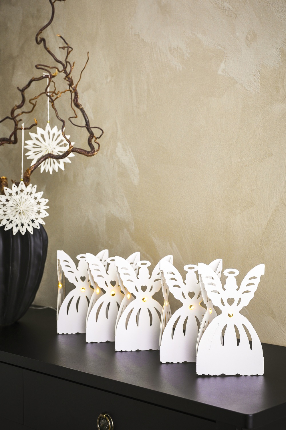 Nygården borddekoration, engle, 10 LED, hvid