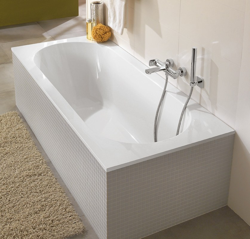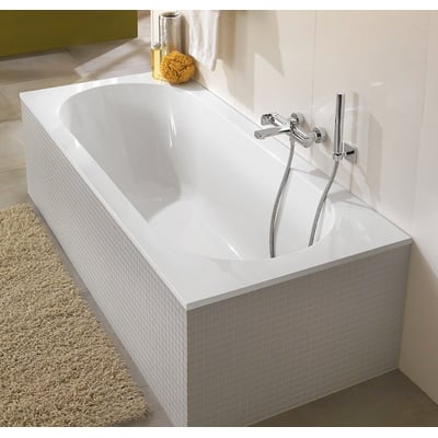 Rektangulært badekar i sanitetsakryl. Mål: 180x80 cm. Med overløb. Til indmuring.