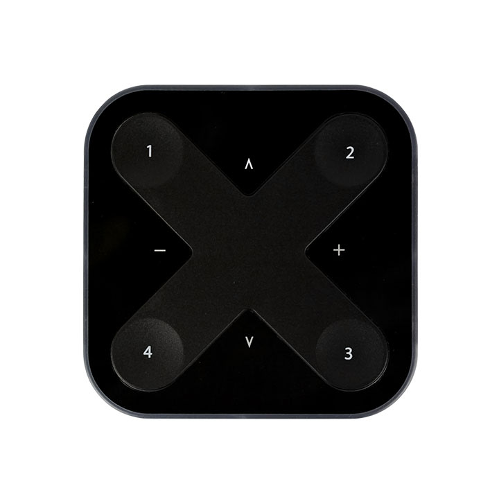 De 4 hjørneknapper kan bruges til at styre grupper, undergrupper eller individuelle lamper, samt aktivere scener og animationer. Dertil giver dimmeknapperne fuld kontrol over lysniveauerne. Multifunktionelle knapper giver mulighed for at ændre farvetemperaturen eller forholdet mellem indirekte og direkte lys (på relevante armaturer).