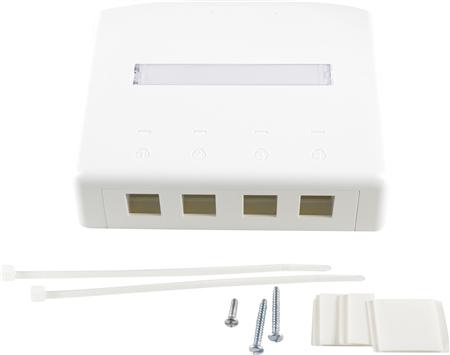 Dataudtag med 4 porte til NetConnect keystone konnektorer. Ideel til kontoret.