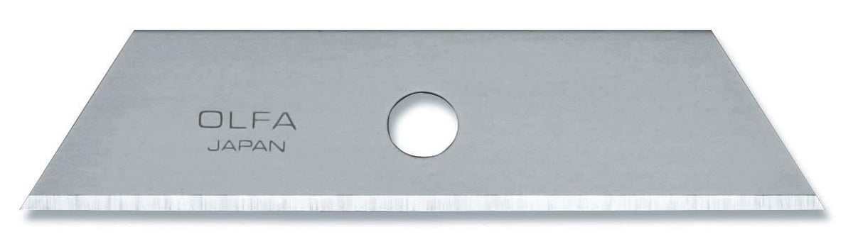 Dette sæt indeholder 5 stk. Olfa SKB-2 trapez knivblade, fremstillet i stål. Disse blade er designet til at passe til Olfa sikkerhedsknivene SK-4 og SK-5.