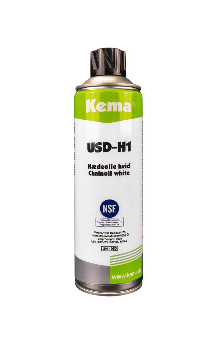 Kema USD-H1 er en fed, fuldsyntetisk olie, der er udviklet til brug på maskiner inden for fødevare- og medicinalindustrien, hvor et vedhæftende og transparent smøremiddel er påkrævet. Produktet er smags-, lugt- og farveneutral.