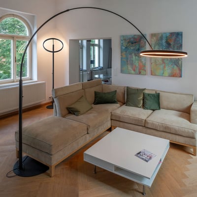 ONE BOW FL standerlampen er perfekt til smarte opholdsrum, hoteller, restauranter og butikker. Et alsidigt design der giver et flot lys.