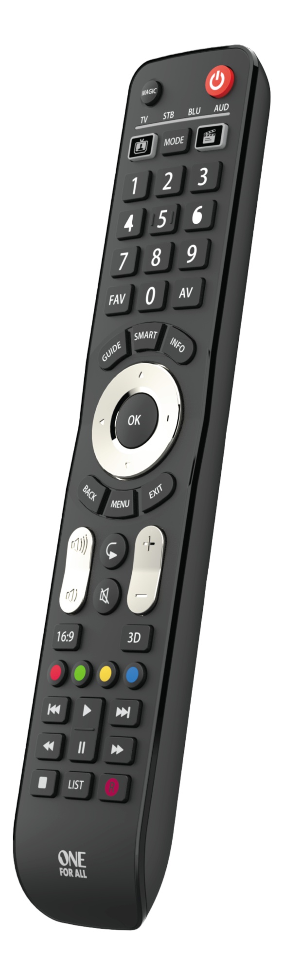 Fore simplificer din underholdningsoplevelse med denne universal fjernbetjening. Styr op til fire enheder som TV, kabel-/satellit-boks, Blu-ray/DVD og lydsystem med én enkelt fjernbetjening.