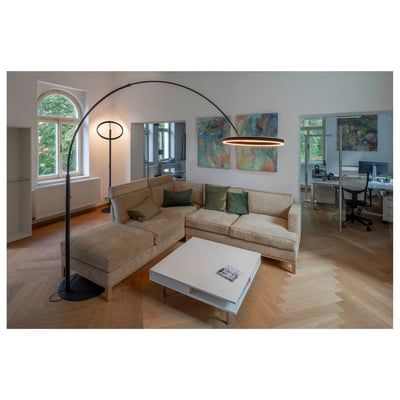 Elegant standerlampe i sort design. Perfekt til opholdsrum, hoteller, restauranter og butikker. Justerbar farvetemperatur og lang levetid.