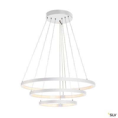 Elegant ONE TRIPLE DALI pendel fra SLV i hvidt aluminium. Perfekt til indendørs brug med justerbart hvidt lys og DALI dæmpning.