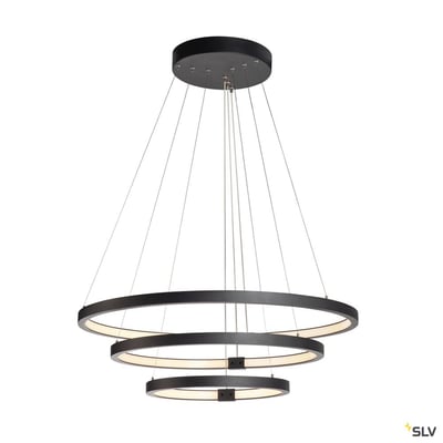 ONE TRIPLE DALI pendel fra SLV. Moderne LED pendel i sort aluminium med justerbart hvidt lys og DALI dæmpning. Perfekt til indendørs brug.