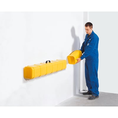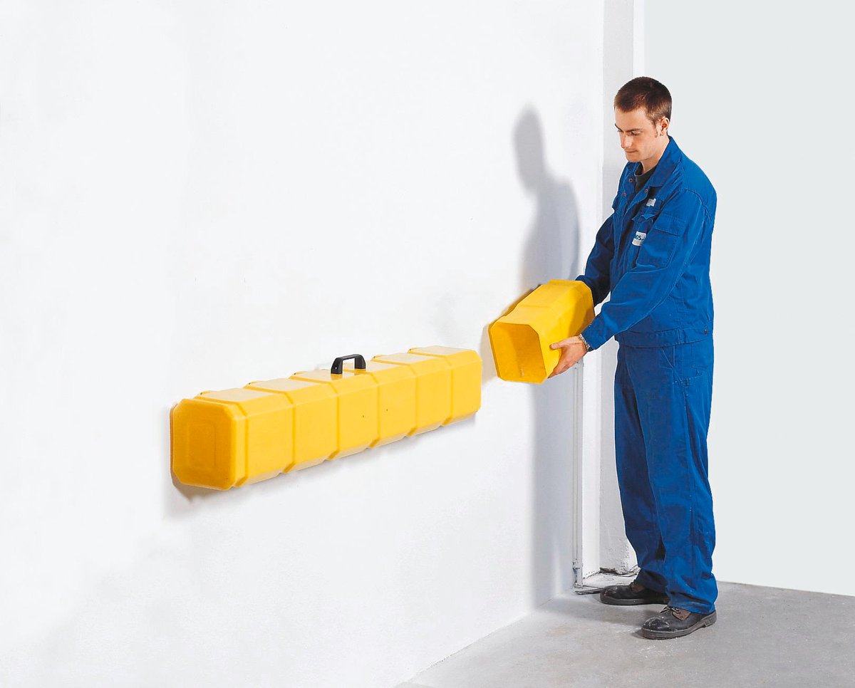 Opbevaringsboks med håndtag til tætningsmåtter. Stabil boks af miljøvenlig polyethylen (PE). Klar til vægmontage (inkl. monteringsmateriale).