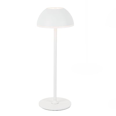 Opladelig LED bordlampe i hvidt aluminium til både indendørs og udendørs brug. Touch dæmpbar med justerbar lysfarve og IP54 klassificering.
