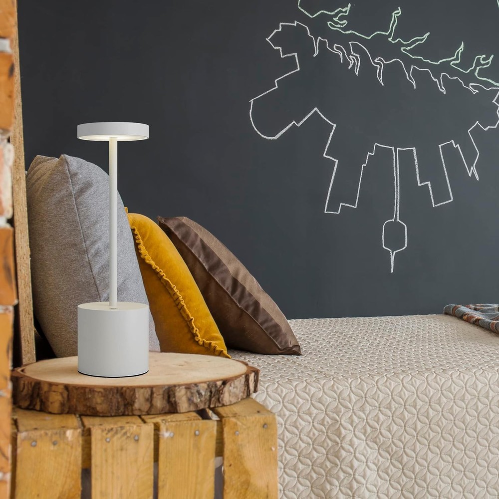 Denne elegante hvide LED bordlampe er designet til at skabe en behagelig atmosfære både indendørs og udendørs. Den opladelige funktion gør det nemt at flytte lampen, så du kan placere den, hvor du ønsker det.