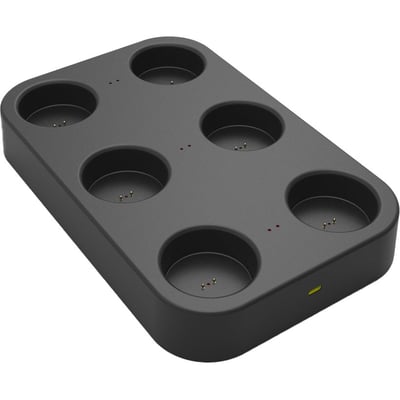 Effektiv opladestation i sort plast til indendørs brug, designet til at oplade op til 6 Intelligent batterier samtidigt.
