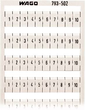 WMB multipåskriftsystem, vandret, 1-10 (10x). Til bredder på 5-17,5 mm. 10 strimler med 10 mærker pr. kort. Fortløbende cifre.