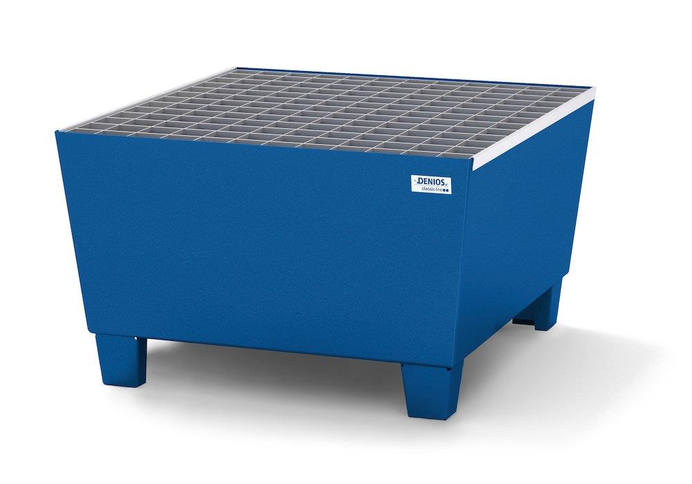 Det kompakte og pladsbesparende design gør karret let at håndtere med gaffeltruck eller palleløfter. Godkendt til opbevaring af vandforurenende medier og antændelige væsker (H224 - H226).