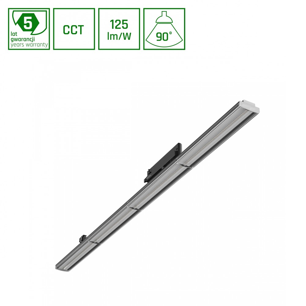 Fleksibel 3-faset skinnespot på 120 cm med justerbar CCT og watt (12-42W). Høj farvegengivelse (RA90) og 125lm/W effektivitet. 90 graders spredning.