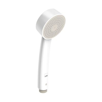 Hvid håndbruser fra Oras' Apollo-serie. Vandbesparende design med et forbrug på kun 7 liter pr. minut ved 3 bar.