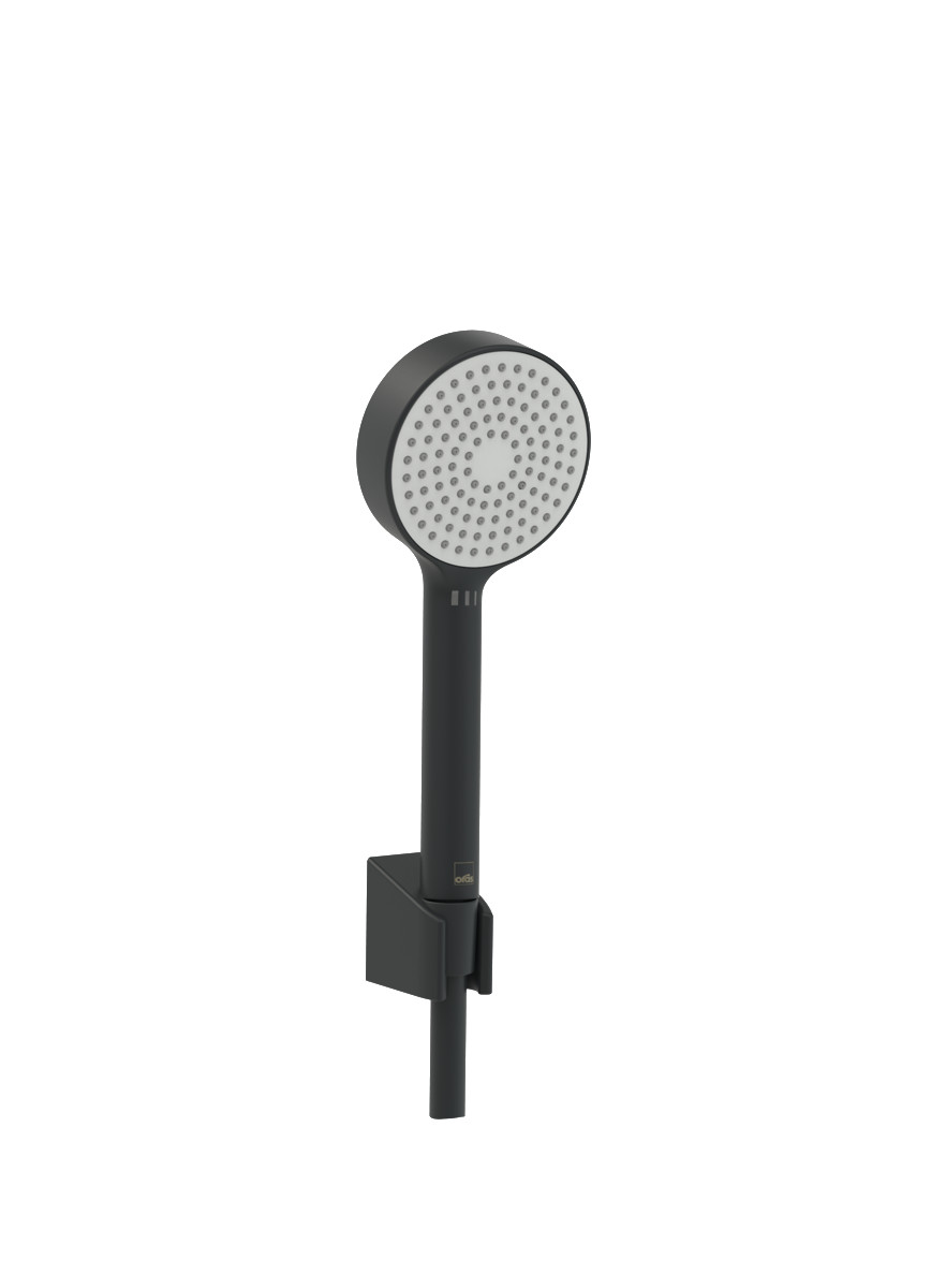 Oras Apollo håndbrusersæt i mat sort. Inkluderer håndbruser, vægholder og 1750 mm bruserslange. Håndbruseren har 1 stråletype.