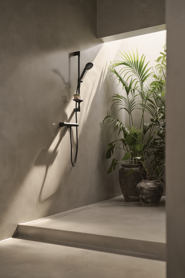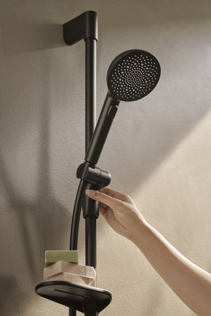 Elegant Oras Aurelia bruserarmatur i sort mat med brusersæt. Juster nemt flow og temperatur for den perfekte bruseoplevelse. Vandbesparende funktion.
