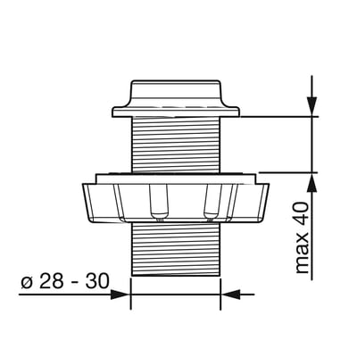 Bordgennemføring til Bidetta håndbruser. Max 40 mm bordplade tykkelse.