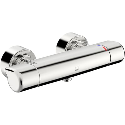 Oras Care brusetermostat med ergonomiske, dråbeformede greb, der gør den nem at betjene. Med sikkerhedsstop ved 38°C og EcoFlow.