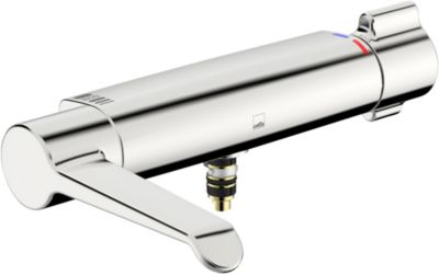 Oras Clinica håndvaskarmatur er et vægmonteret, 2-grebs armatur i krom, designet til sundheds- og plejesektoren med termostatisk kontrol.