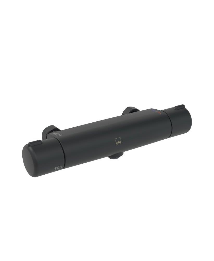 Oras Nova bruserarmatur med termostatstyring og EcoFlow. Sikkerhedsstop ved 38°C. Farve: Mat sort.