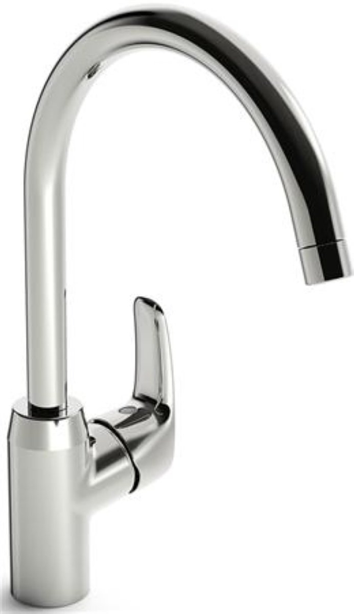 Køkkenarmatur med høj svingtud. Svingradius er 120° som standard (kan begrænses til 0°-60°). Der er mulighed for, at begrænse flow og temperatur på armaturets kartouche.