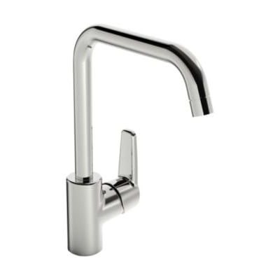 Dette Oras Swea etgrebsbatteri kombinerer funktionalitet med et stilrent design i krom og messing. Batteriet er designet til nem montering på både bord og vask og har en svingbar U-tud på 203 mm.
