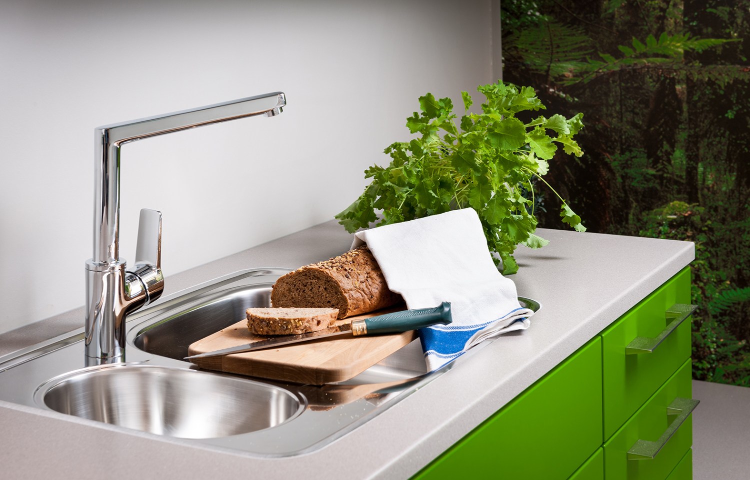 Dette Oras etgrebsbatteri fra Twista-serien er designet til bord- eller vaskemontering og leveres i en elegant messing-finish med forkromning. Batteriet har en 193mm lang L-formet tud, der giver god rækkevidde og funktionalitet i køkkenet.
