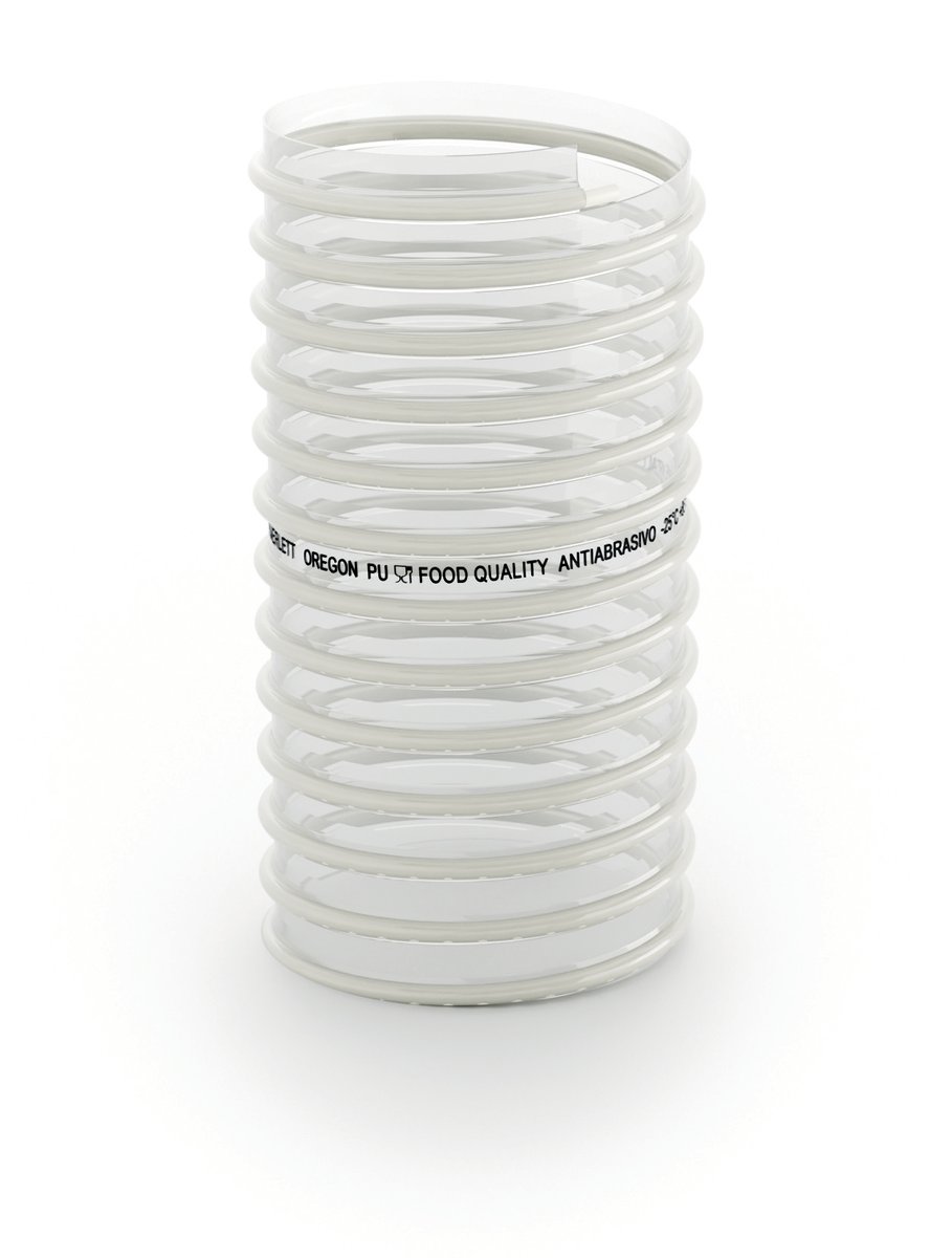 Fleksibel polyurethane PU polyether slange med hård PVC spiral. Velegnet til suge- og trykopgaver.
