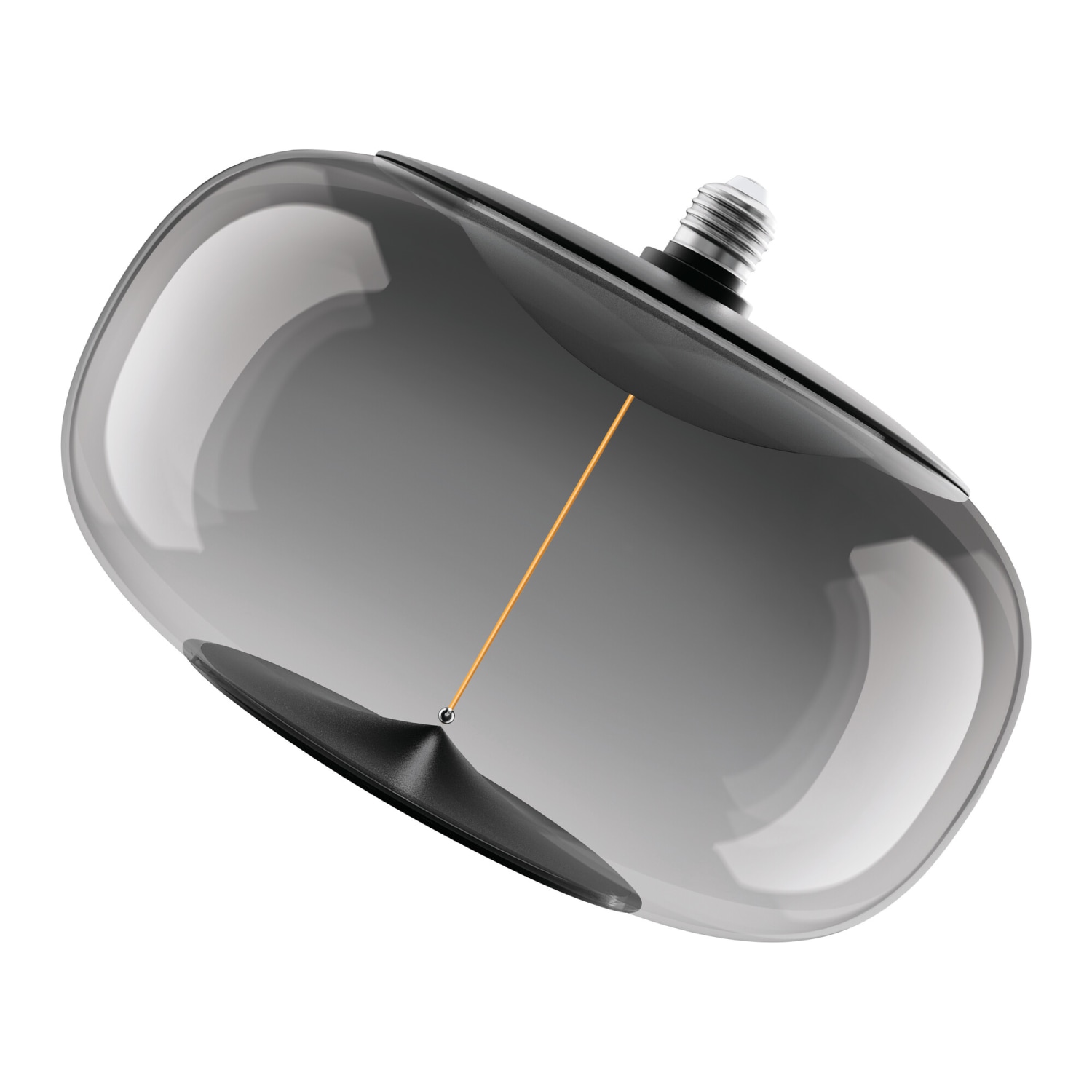 Denne dæmpbare LED-lyskilde fra Osram 1906-serien kombinerer et dekorativt design med moderne teknologi. Den store ellipseform og røgfarvede overflade giver et behageligt og varmt hvidt lys, der er ideelt til både hjemmet og generel belysning.