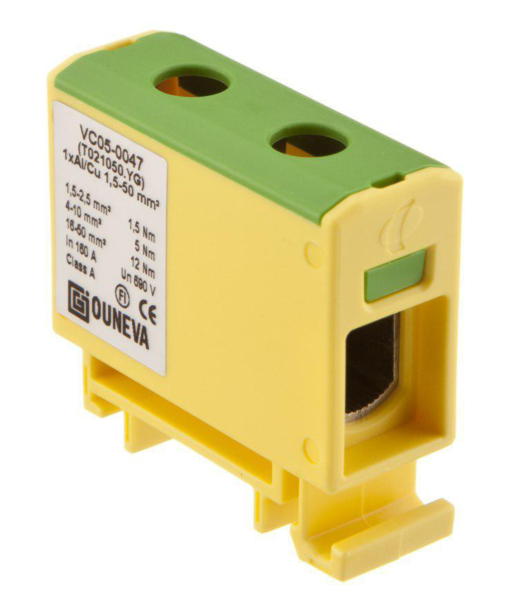 Ouneva otl-klemmer til tilslutning og forgrening af alu- og cu-kabler. Krop og skruer i fortinnet aluminium. Kappe i plast.
