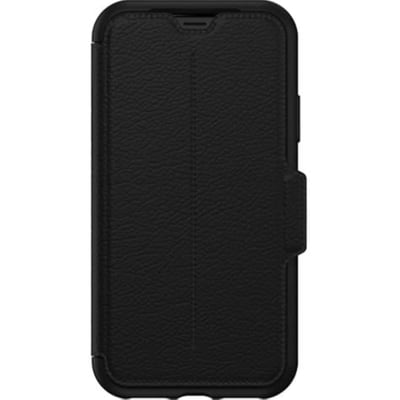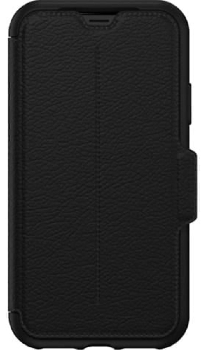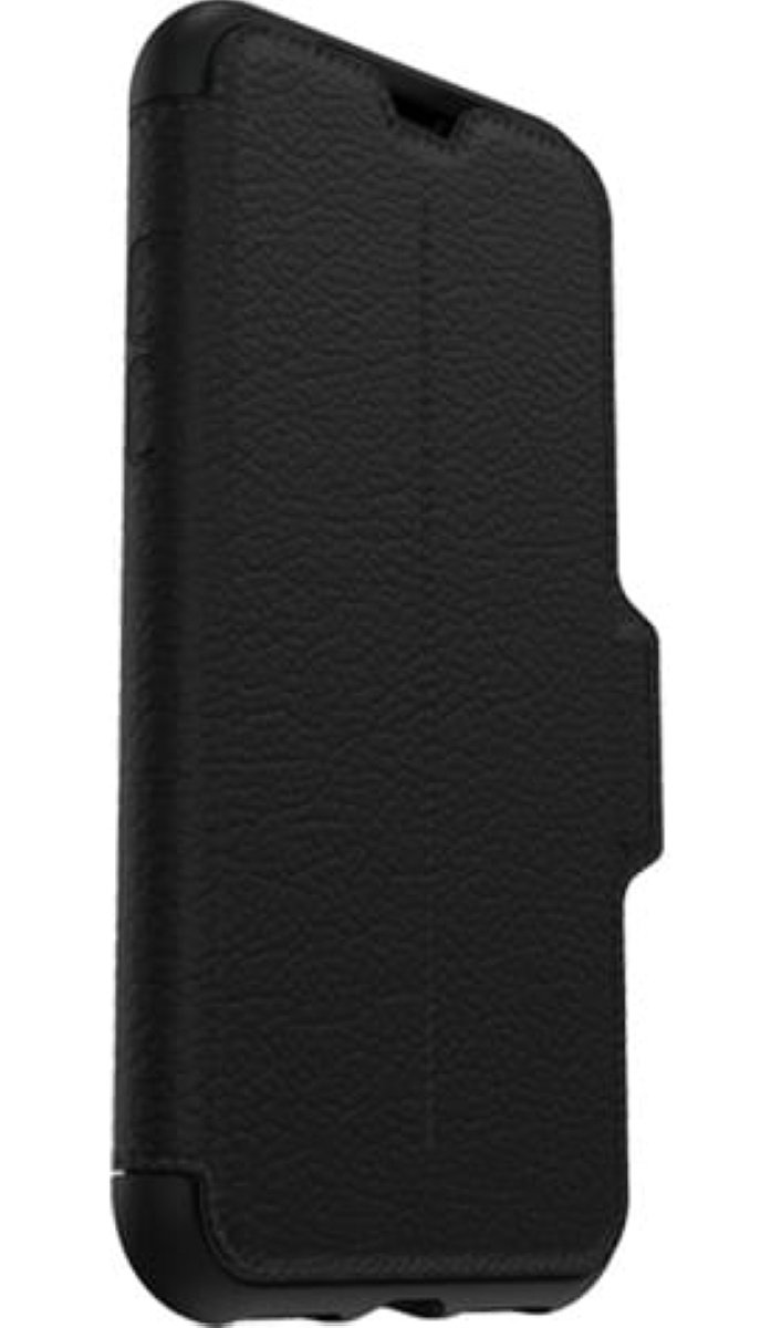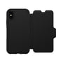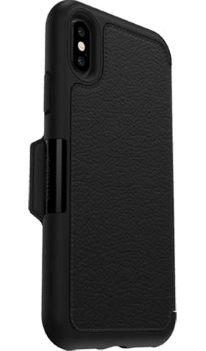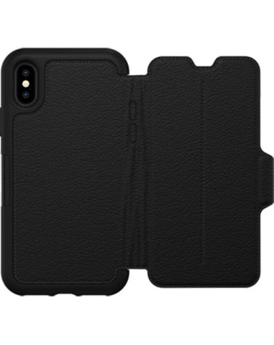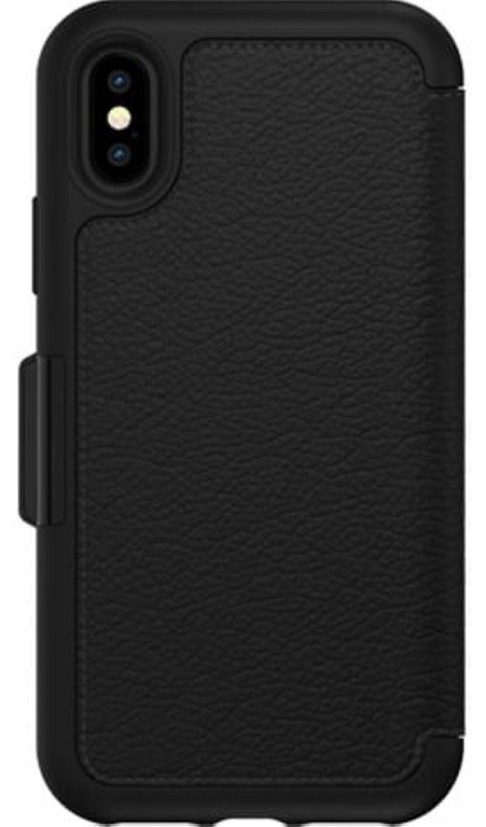 Elegant OtterBox Strada cover i sort læder til iPhone X. Beskytter din enhed mod stød og fald, samtidig med at det stilfulde design bevares. Praktisk lomme til kort.