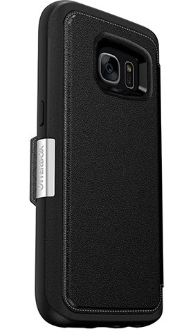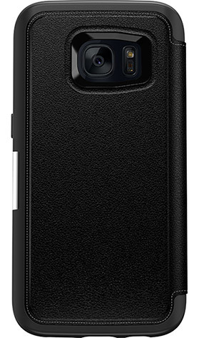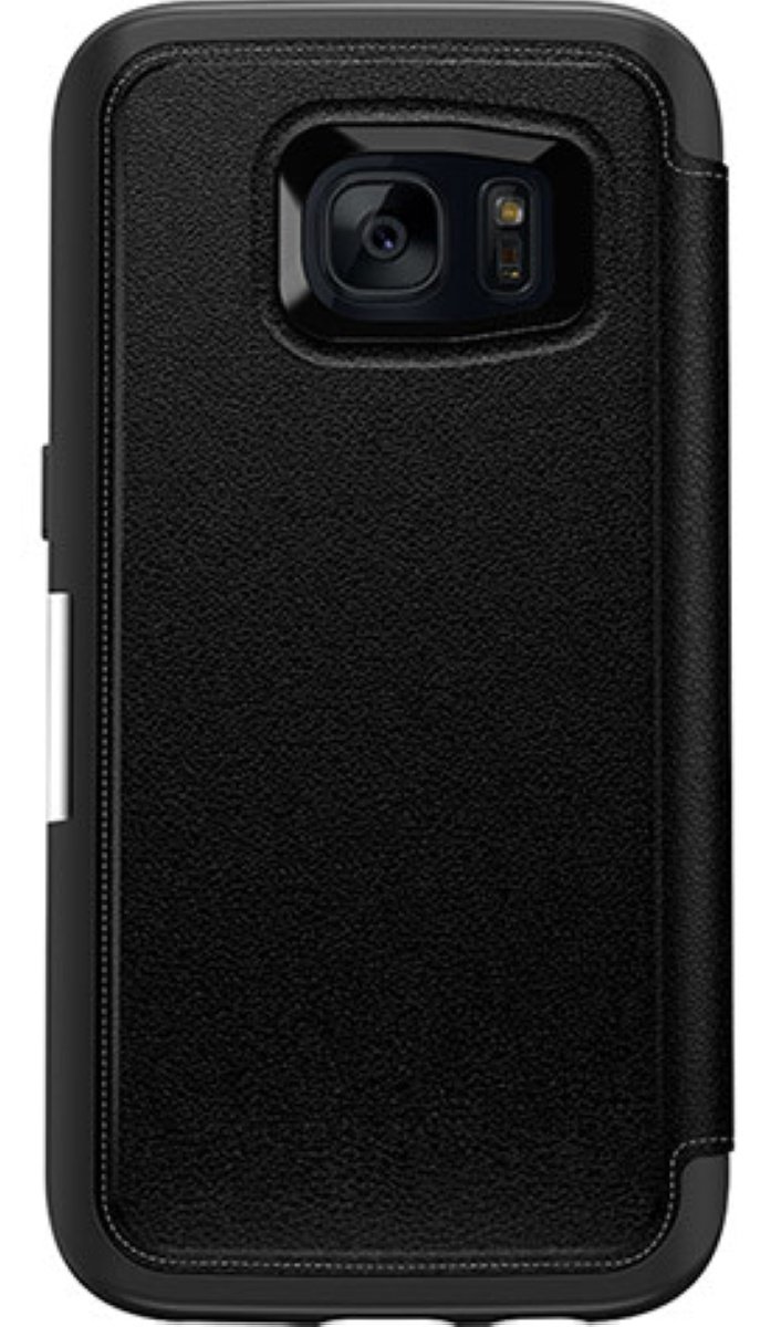Elegant OtterBox Strada cover i sort læder til Samsung S7. Beskytter din enhed mod stød og fald, mens det stilfulde design bevares. Praktisk lomme til kort.