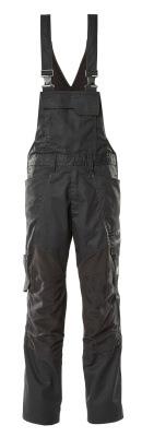 Arbejds-overall i sort med fokus på komfort og funktionalitet