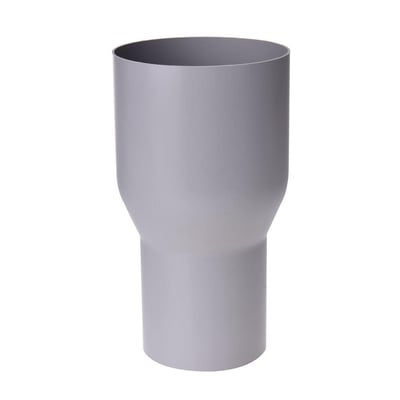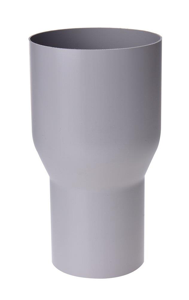 Plastmo overgang i grå plast til sammenkobling af tagrender med forskellige diametre. Nem og holdbar montering.