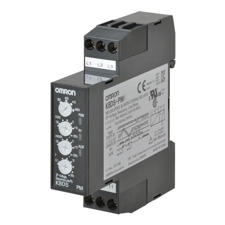 Overvågningsrelæ 17,5 mm bredt. Beskytter mod over-/underspænding, fasesekvens og tab. Til 3-faset 3-leder systemer.