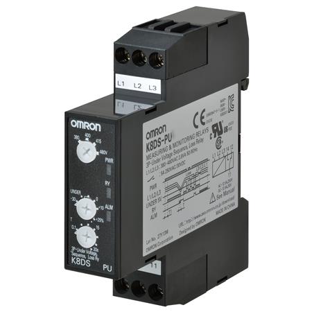 Overvågningsrelæ 17,5 mm bredt til overvågning af spænding, fasesekvens og tab. Til 3-faset 3-leder systemer.