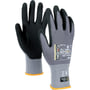 Handsken er strikket i nylon og elastan, hvilket giver en fremragende åndbarhed og fleksibilitet. Håndfladen og fingrene er belagt med en specialudviklet nitrilskum, der sikrer et sikkert greb og optimal fingerføling.
