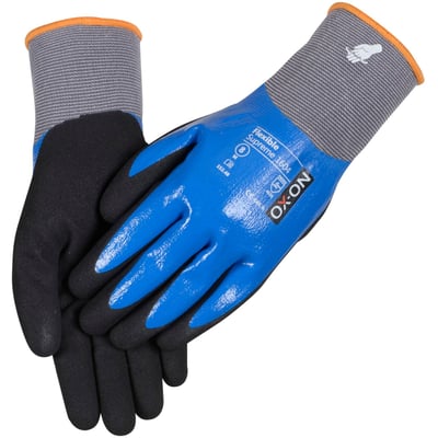 Vandtæt allround-handske med en naturlig pasform, fin fingerfølelse, smidighed og førsteklasses slidstyrke. Særlig velegnet til f.eks. VVS-, murer- eller kloak-opgaver. Handsken har to gange nitril-belægning. Den inderste blå belægning holder dine hænder tørre. Den yderste sorte belægning er sandy nitril, der sikrer dig et sublimt greb i både våde og tørre miljøer.