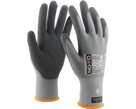 Slidstærk arbejdshandske med oksehud i håndfladen, på fingerspidser og ved knoerne. God komfort og bevægelighed. Afstivet manchet.